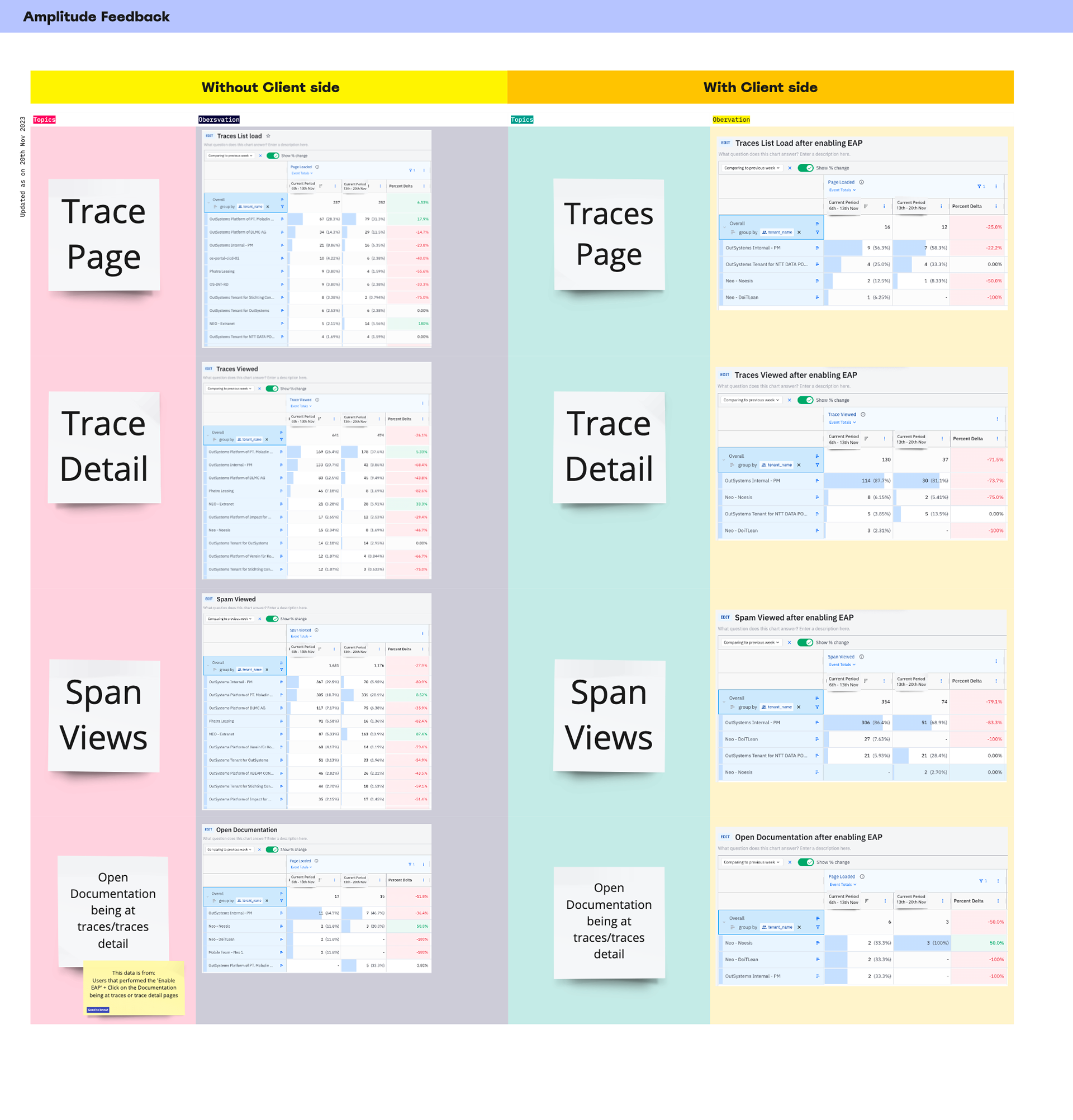 Client-side traces were developed and made available for few enterprise accounts as for beta testing. We used Amplitude to setup KPIs that gave us important insights on customers who had access to client-side traces vs customers who didn't have access to it.